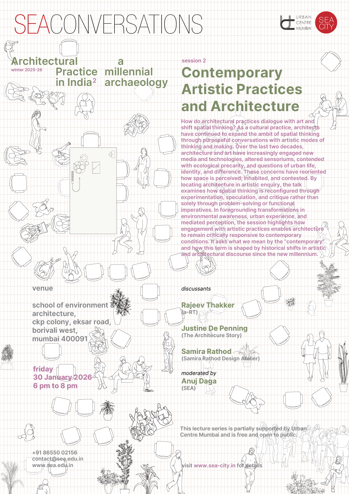 The new cycle of SEA City Conversations is conceived as a year-long series of panel discussions featuring architects and spatial commentators, whose own practices have decisively responded to the millennial shifts in the region, by means of slipping, fitting or pushing the envelopes of conventional formats of practice. Methodologically, the series will draw upon the professional biographies of practitioners from across the city whose trajectories have remained representatively pivotal in bringing and operating in such changing dynamics of practice. Through reflexive interrogation and collective debate over the upcoming year, the programme imagines to present itself as an open course for the city, and invite the public to participate in a collective architecture history-writing exercise that seeks to critically engage with the evolving realities of contemporary architecture in India.
